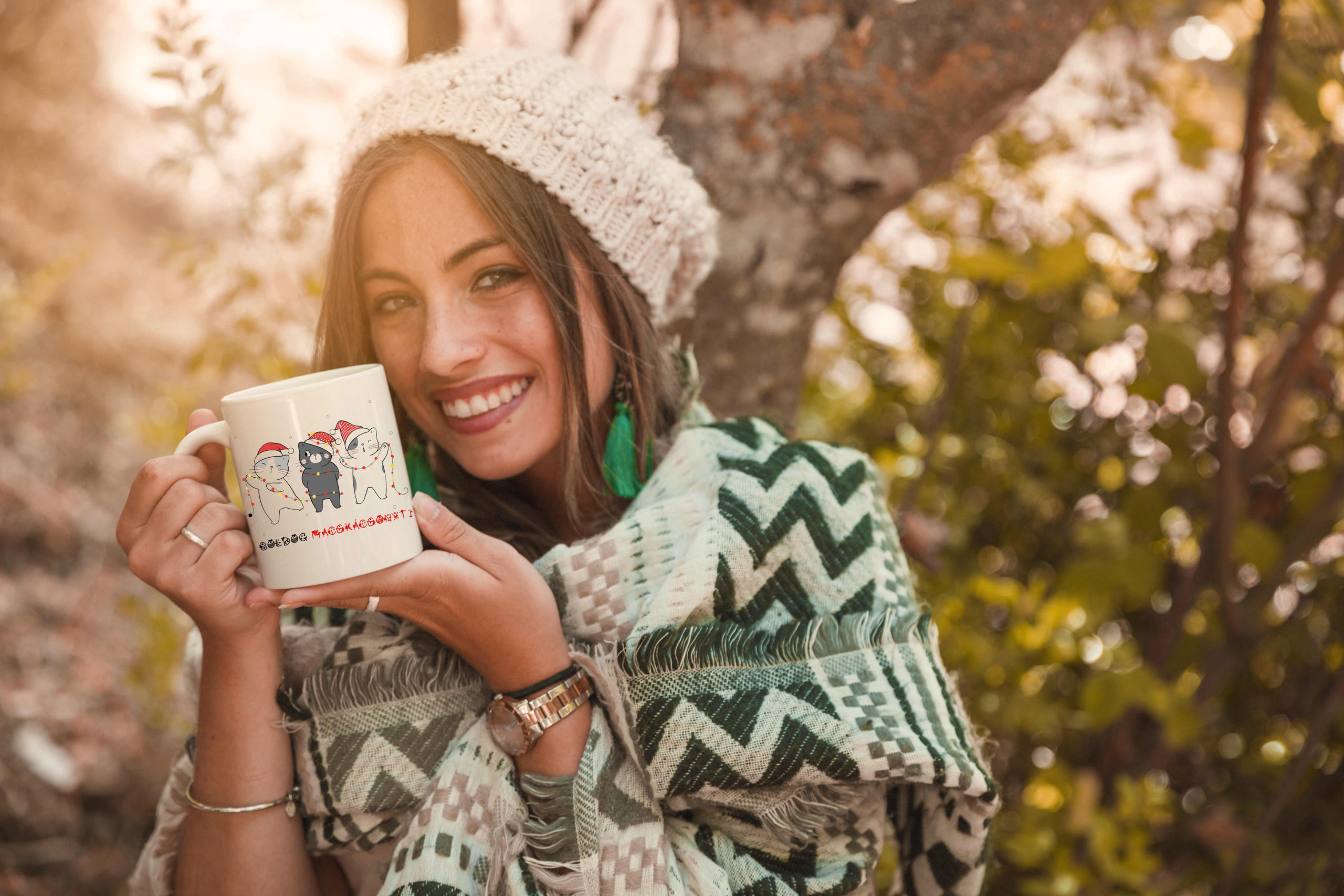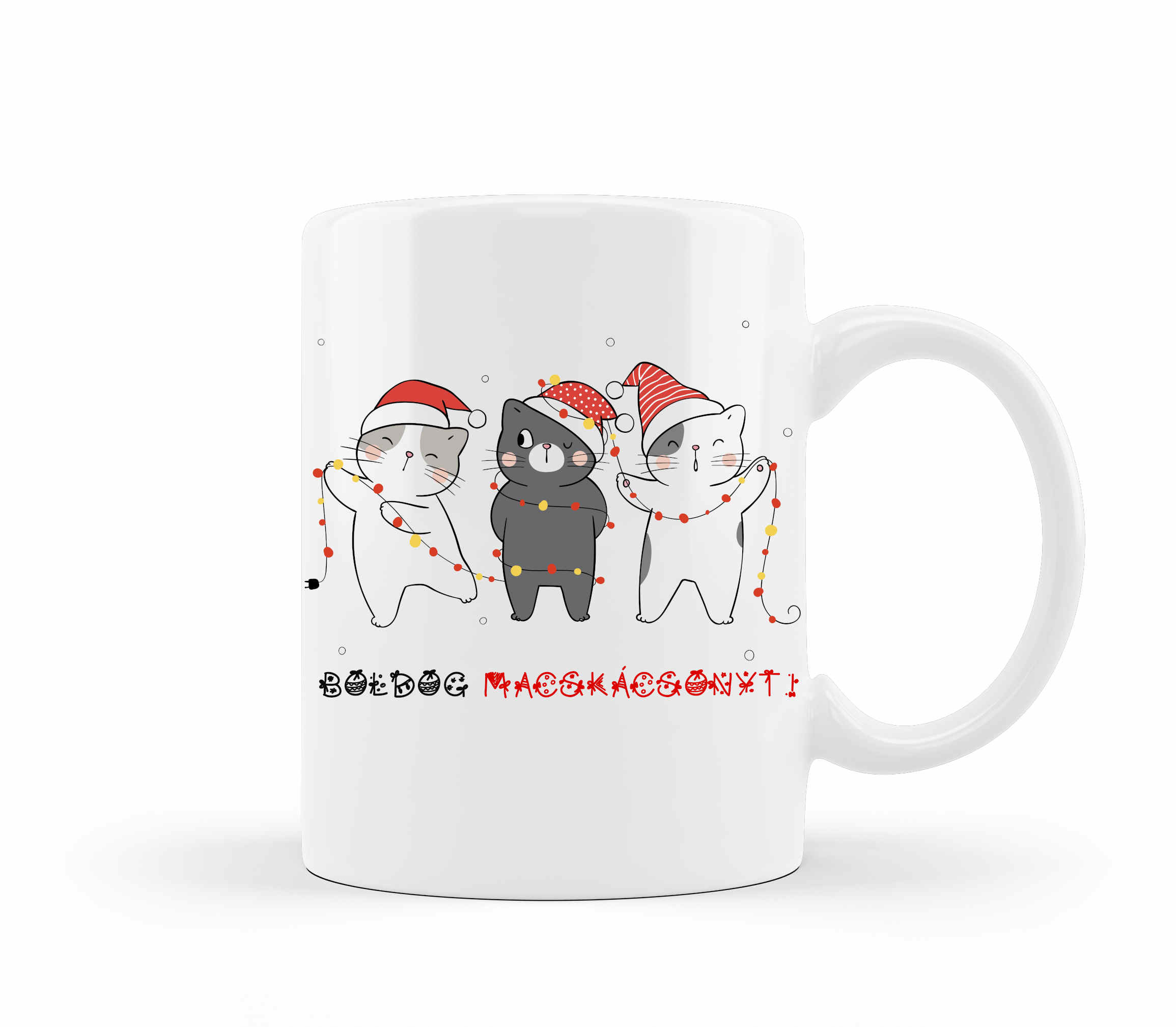 Kedves karácsonyi cicás mintával, „Boldog Macskácsonyt!” felirattal ellátott bögre.