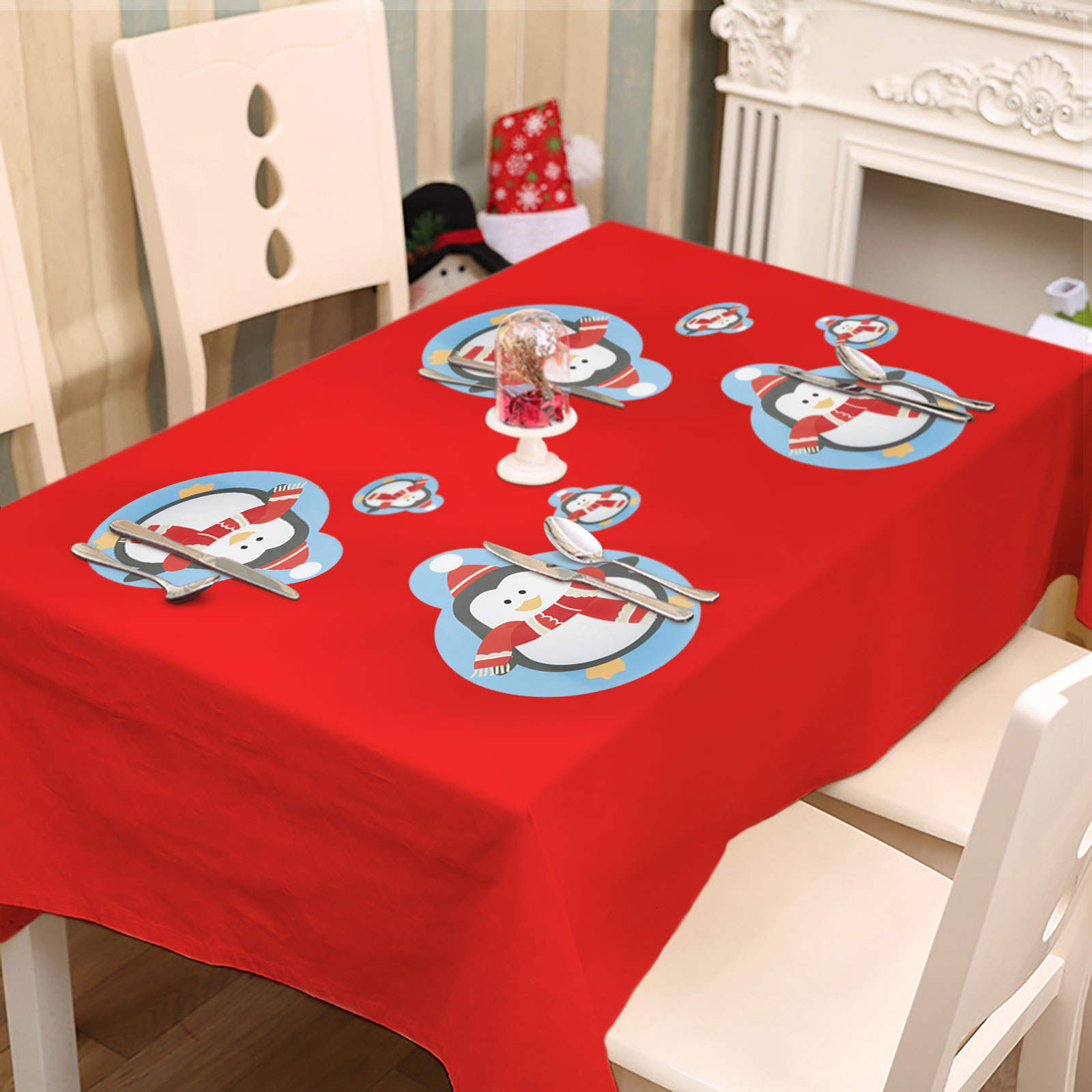 Karácsonyi asztali tányér- és poháralátét pingvin mintával. A szett 4 tányér és 4 mosolygós pingvines poháralátétet tartalmaz.