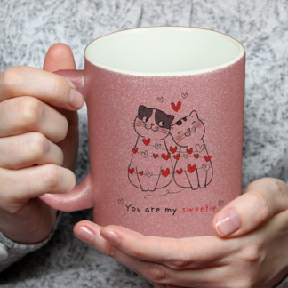 Cicás bögre – You are my sweetie – Glitteres csillám pink