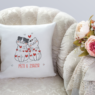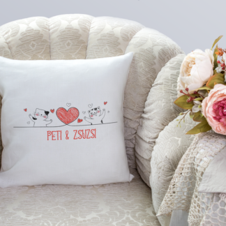Cicás szíves párnahuzat – egyedi névvel – fehér – plüss hátoldallal