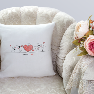 Cicás párnahuzat – Happy Love – fehér – plüss hátoldallal