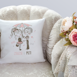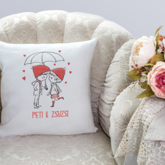 Pár esernyő alatt – egyedi névvel – fehér – plüss hátoldallal
